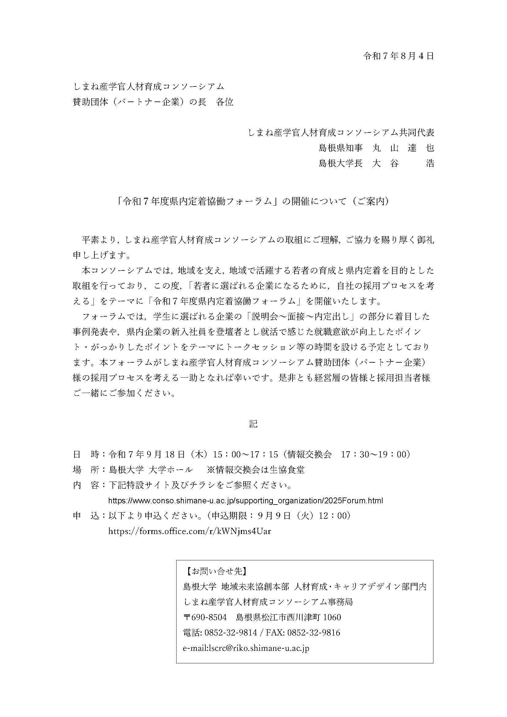賛助団体を対象に「若者に選ばれる企業になるために、自社の採用プロセスを考える」をテーマに「令和7年度県内定着協働フォーラム」を開催いたします。