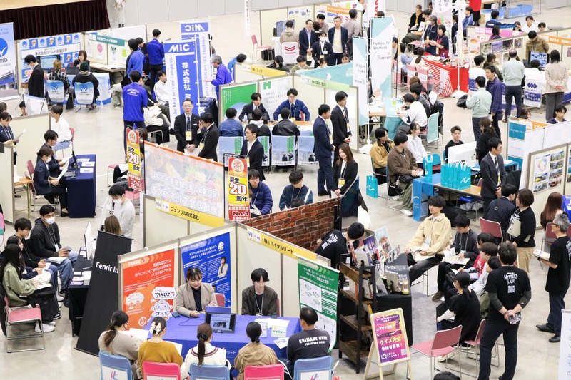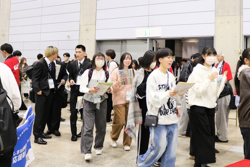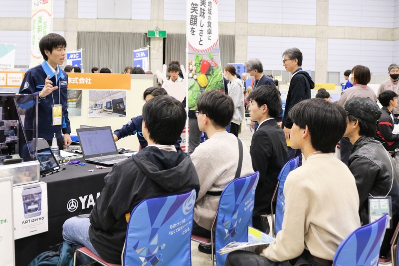 会場では、数多くの若者が、自分が興味のある出展ブースを回り、島根で働くことや学ぶことの魅力、実際の働き方の紹介、企業が制作している製品等の実物展示や実演などを通して、様々な出会いや発見をしていました。